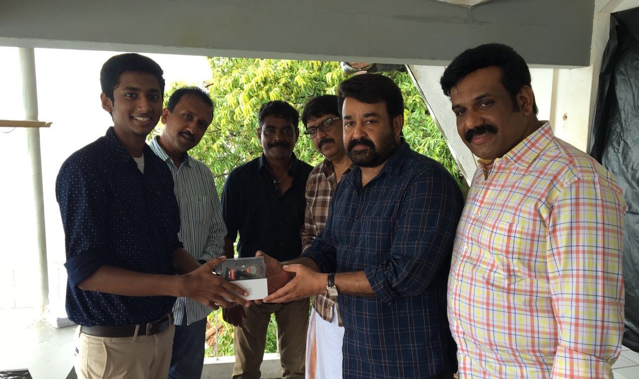 Mr. Asher Y. Mathew - A+ in all subjects in 2016 (S/o Mr. Mathew Kurian, Driver at Music Lounge) receiving the gift from Padmasree Lt Col Mohanlal in the presence of Mr. John Thomas (Managing Director), Mr. Santhosh T, Kuruvilla (Managing Partner & GM), Mr. Antony Perumbavoor & Mr. B.Unnikrishnan