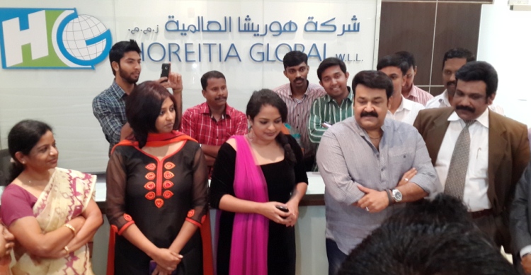 Ms. Joemol Jose - A+ in all subjects in 2016 (D/o Mr. Jose K Paulose, Driver at Umm Salal Ali Camp-1) receiving the gift from Padmasree Lt Col Mohanlal in the presence of Mr. John Thomas (Managing Director), Mr. Santhosh T, Kuruvilla (Managing Partner & GM), Mr. Antony Perumbavoor & Mr. B.Unnikrishnan