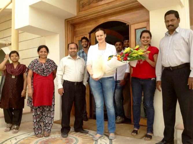Mr. Vayalar Ravi (Hon.Union Cabinet Minister of Overseas Indian Affairs ) receives a warm welcome in our office
